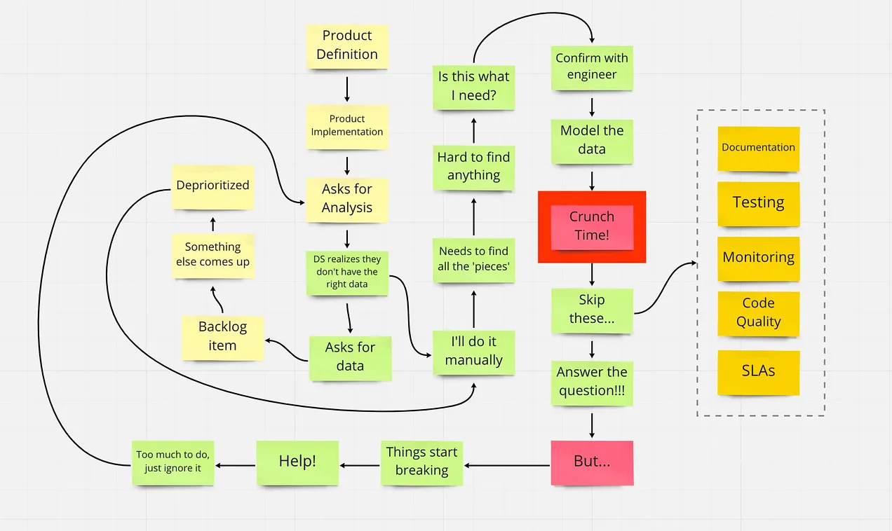 They are all just doing what they want. The people who build the core tables in the warehouse are often not the same people who talk to the product teams about developing data for their business use cases. The folks who receive requests from product teams are doing so in vertical silos. For example, the payments team may be developing data sets for payments, but they are not talking to the teams that would be interested in consuming those data sets. This results in gaps between the data we have and the data we actually need to answer questions.