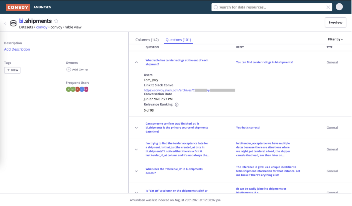 This is particularly important for Convoy, as we have a vast amount of data with hundreds and thousands of tables, some of which are source tables capturing raw event data, while others are downstream tables that have been processed and transformed many times. Without a catalog, navigating the warehouse can be confusing for data analysts, data scientists, or business intelligence engineers. Amundsen simplifies the discovery, navigation, and cataloging process, making it easy to integrate and use. The majority of our data team uses it regularly.