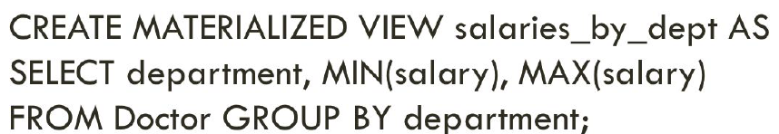 Instead, if we throw in a keyword “Materialized”, it’ll create a table that store whatever value returned by the query. If we want to reuse this query in the future, we can simply refresh this view to access the data from this table.