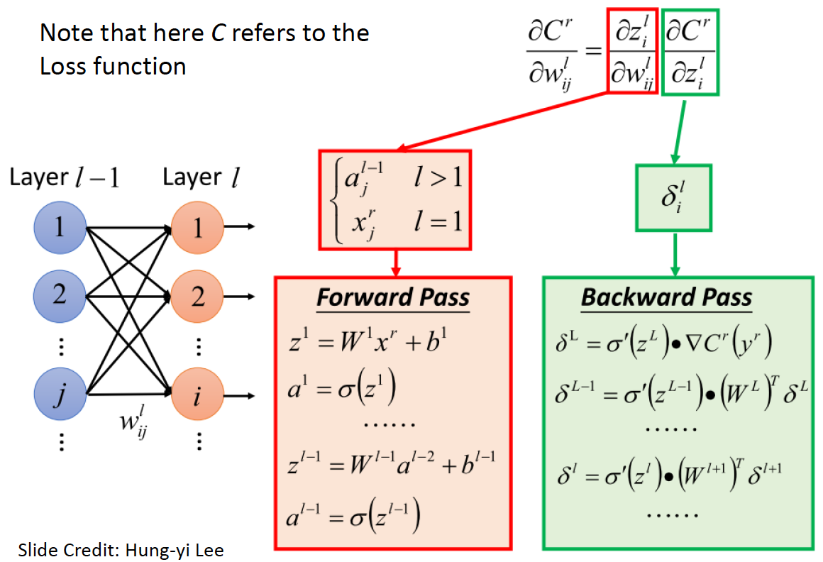 For the math nerds out there, backpropagation is basically repeated application of the chain rule from calculus. The weight updates for layer h require the gradient of the weights with respect to the loss function. Using the chain rule, this can be expressed in terms of the gradient of the weights from layer h + 1 with respect to the loss function. This gives us a computationally efficient way to compute the gradients. Simply re-using the derivatives computed for higher layers is why backpropagation is considered efficient.