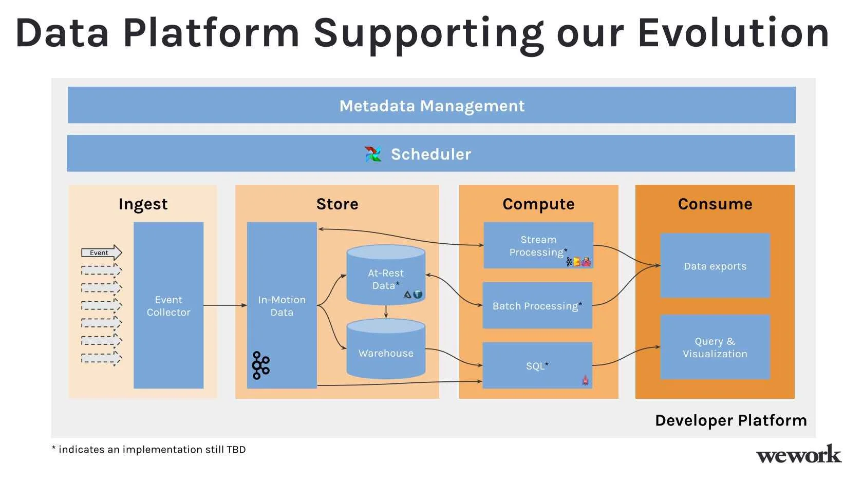 Initially, I was focused on the data engineering side of things. As the data engineering team started to scale, we found a gap in the data platform needs, which include ingestion, storage, compute, and other layers in our pipeline. WeWork’s ecosystem was diverse: we had different types of data, and we had teams focused on digital experience, machine learning, physical construction, and IoT devices. We did not intend to build a one-size-fits-all platform.